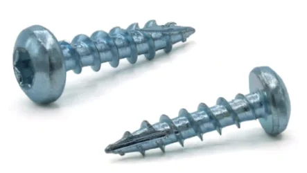 Thread forming screws for plastics are trilobular (featuring a slight triangular shape at the tip) thread rolling screws with extra wide spacing between the threads and a twin lead thread. They're commonly used to engage with plastic materials without a need for a nut on the back end. Their sharper ...